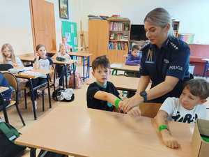 Na zakończenie zajęć uczniowie otrzymali od policjantki odblaski, które poprawią ich widoczność na drodze. Nie zabrakło również atrakcji, dzieci mogły wykonać pamiątkowe odciski palców, co wzbudziło duże zainteresowanie.