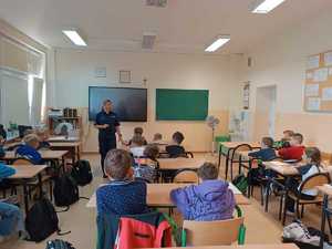 Pierwsze dni września to czas, w którym uczniowie powracają do szkół, a policjanci przypominają najmłodszym o zasadach bezpiecznej drogi do szkoły. Asp. szt. Klaudia Opaczewska z Wydziału ds. Nieletnich i Patologii Komendy Miejskiej Policji w Legnicy spotkała się z dziećmi ze Szkoły Podstawowej nr 18 w Legnicy. Podczas zajęć w przystępny i atrakcyjny sposób omówiła najważniejsze zasady, jakimi należy kierować się, aby droga do szkoły i powrót do domu były bezpieczne.