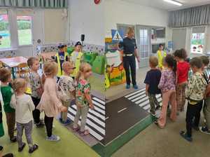 Starszy aspirant Iwona Danielewicz z Wydziału Ruchu Drogowego Komendy Miejskiej Policji w Legnicy odwiedziła Przedszkole Miejskie nr 9 w Legnicy, gdzie przeprowadziła pogadankę na temat zasad bezpiecznego poruszania się po drogach.