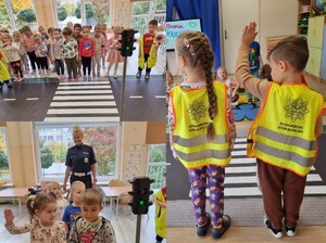 Zajęcia przebiegły w radosnej i przyjaznej atmosferze. Przedszkolaki chętnie odpowiadały na pytania, dzieliły się swoimi spostrzeżeniami i obiecały, że będą zawsze uważne oraz widoczne na drodze.