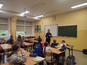 Asp. szt. Klaudia Opaczewska z Wydziału ds. Nieletnich Komendy Miejskiej Policji w Legnicy odwiedziła uczniów Szkoły Podstawowej nr 20. Spotkanie odbyło się w ramach działań profilaktycznych, mających na celu edukację dzieci i młodzieży w zakresie bezpieczeństwa i odpowiedzialności prawnej.