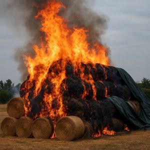 Do pożaru doszło w Kunicach. Z ustaleń policjantów wynika, że ogień pojawił się na terenie, gdzie składowane były baloty siana przykryte plandekami. W wyniku pożaru spłonęło ponad 850 balotów siana, a wstępnie oszacowane straty wyniosły ponad 125 tys. złotych. Ogień rozprzestrzenił się błyskawicznie, powodując znaczne zniszczenia i zagrożenie dla mienia należącego do okolicznych mieszkańców.