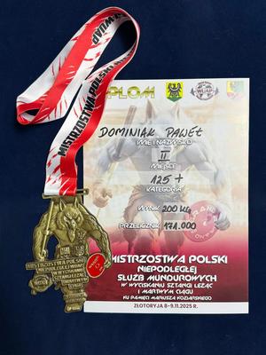 Funkcjonariusz Wydziału Ruchu Drogowego asp. Paweł Dominiak z Komendy Miejskiej Policji w Legnicy, wziął udział w Mistrzostwach Niepodległej Polski w Złotoryi. Funkcjonariusz wycisnął 200 kg leżąc i tym samym zajął II miejsce w swojej kategorii wagowej.