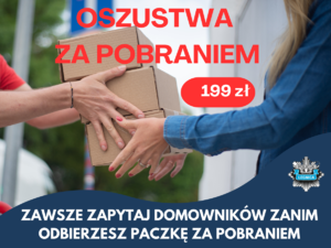 Legniccy policjanci ostrzegają mieszkańców Legnicy i powiatu przed nową metodą oszustwa „na paczkę za pobraniem”. W ostatnich dniach do komendy wpłynęło już pięć zgłoszeń od osób, które zapłaciły 199 zł za przesyłkę, której nikt z domowników nie zamawiał. W środku znajdowała się jedynie używana, bezwartościowa bluza. Apelujemy o ostrożność, zanim zapłacisz za paczkę, upewnij się, że faktycznie została zamówiona.