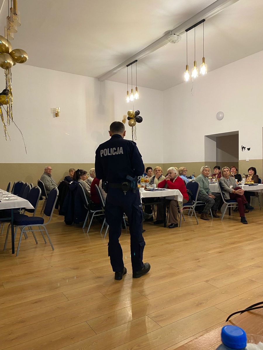 Poruszono także temat szeroko rozumianego bezpieczeństwa w miejscu zamieszkania, w tym właściwego zabezpieczenia domów i mieszkań, ostrożności wobec obcych oraz dbałości o swoje mienie. Spotkanie przebiegło w przyjaznej atmosferze, a seniorzy chętnie zadawali pytania i dzielili się swoimi doświadczeniami.