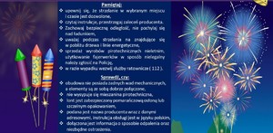 - przypominamy, że sprzedaż fajerwerków i petard osobom niepełnoletnim jest przestępstwem, zagrożonym karą grzywny, ograniczenia wolności lub pozbawienia wolności do lat dwóch.