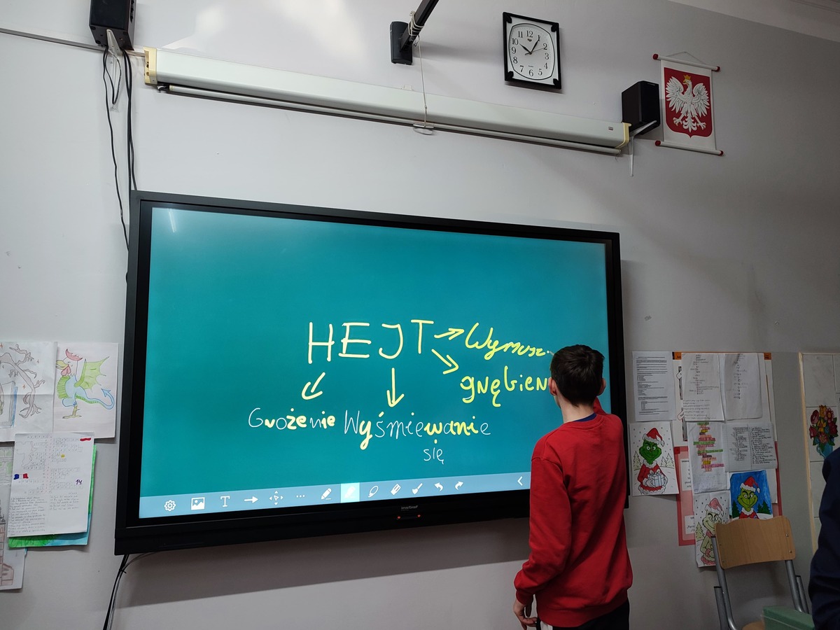 Podczas spotkania poruszono niezwykle ważne i aktualne tematy związane z hejtem, czynami karalnymi oraz bezpiecznym spędzaniem zbliżających się ferii zimowych. Uczniowie dowiedzieli się, czym jest hejt, jakie mogą być jego konsekwencje, zarówno dla osób go doświadczających, jak i tych, które go stosują, oraz dlaczego pozornie „niewinne” komentarze w Internecie mogą prowadzić do poważnych problemów prawnych i emocjonalnych.