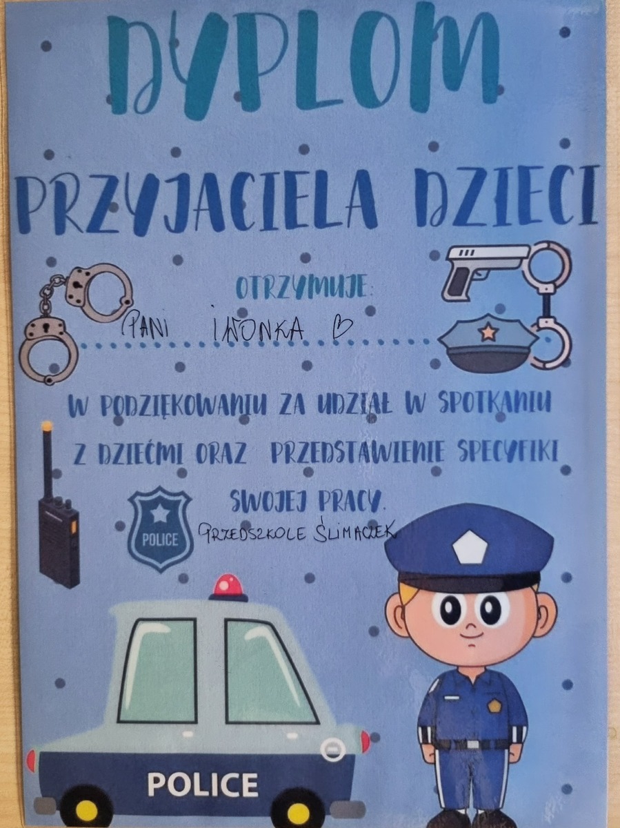 St. asp. Iwona Danielewicz z Wydziału Ruchu Drogowego Komendy Miejskiej Policji w Legnicy odwiedziła dzieci z Przedszkola „Ślimaczek”, gdzie przeprowadziła zajęcia profilaktyczne z zakresu bezpieczeństwa w ruchu drogowym.