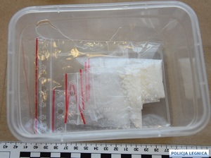 W trakcie realizacji sprawy policjanci ujawnili w pojeździe mężczyzny oraz w należących do niego pomieszczeniach blisko kilogram różnego rodzaju narkotyków. Wśród zabezpieczonych substancji znajdowały się m.in. kokaina, marihuana, MDMA, metamfetamina oraz inne środki odurzające.