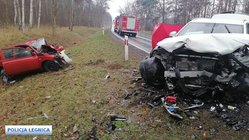 Wczoraj w godzinach porannych oficer dyżurny Komendy Miejskiej Policji w Legnicy został poinformowany o zderzeniu czołowym dwóch pojazdów osobowych na trasie pomiędzy Lubinem a Prochowicami. Natychmiast na miejsce skierowano funkcjonariuszy i pomimo przeprowadzonej akcji ratunkowej życie straciła 75-letnia kierująca Nissanem. Policjanci poddali kierującego badaniu na zawartość alkoholu w wydychanym powietrzu a wynik wskazał, że mężczyzna jest trzeźwy - została mu pobrana krew do dalszych badań. Pod nadzorem prokuratora i przy udziale biegłego z zakresu rekonstrukcji wypadków drogowych, policjanci prowadzą czynności mające na celu ustalenie okoliczności tego tragicznego zdarzenia. 24-letni mężczyzna kierujący Volvo został zatrzymany i doprowadzony do policyjnej izby zatrzymań.